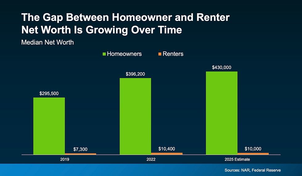 On the other hand, owning a home is one of the most consistent ways people build wealth over time. Why? When you’re a homeowner, you gain something called equity. That’s the difference between what your home is worth and what you owe.